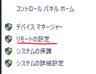 - コントロールパネル > システムとセキュリティ > システム > リモートの設定 を開きます。