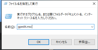 - デスクトップ画面で「Win + R」 を押下し、「gpedit.msc」と入力し、OKをクリック