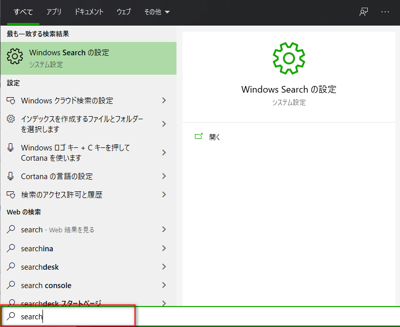 スタートメニューを押してキーワードを入れると自動検索されます。